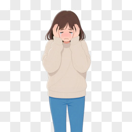 手绘卡通女孩崩溃大哭免抠元素