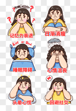 一组抑郁症焦虑症焦躁自闭症患者症状素材