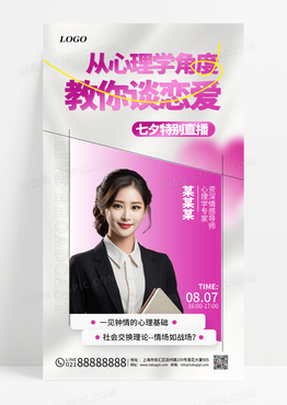 紫色创意简约七夕直播教育海报