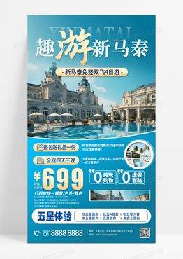 活动促销蓝色新马泰新马游旅游出国游手机宣传海报