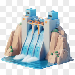 3D插画风格新型发电水力风力光伏发电免抠元素