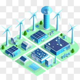 3D插画风格新型发电水力风力光伏发电免抠元素