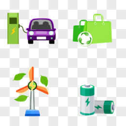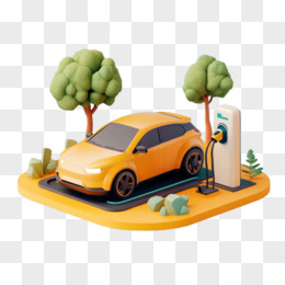 3D卡通新能源绿色小车和风车充电桩免抠元素