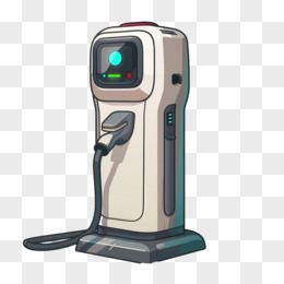 3D卡通一个绿色电动汽车充电桩免抠元素