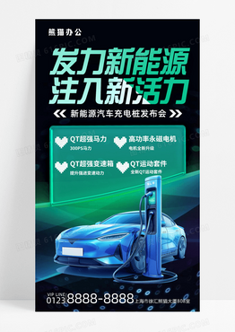 新能源科研汽车充电桩绿色科技风光效商务海报