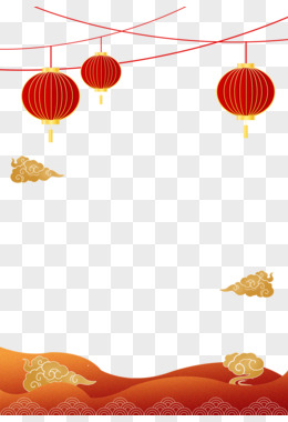 卡通新年装饰红色灯笼中国结边框免抠元素