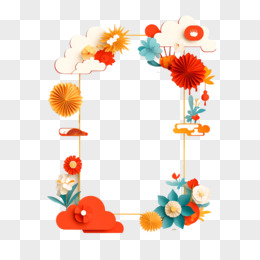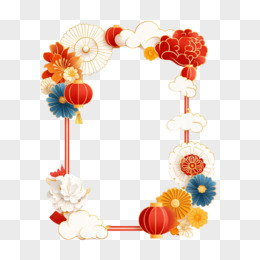 红色马年小马拿灯笼鞭炮边框免抠元素