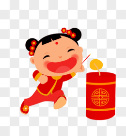 新年通用素材小朋友放鞭炮免抠元素