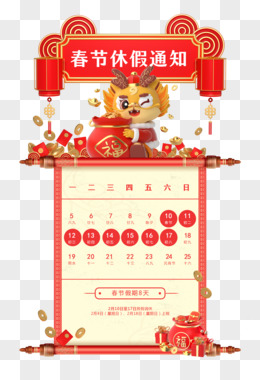 龙年春节放假通知创意元素