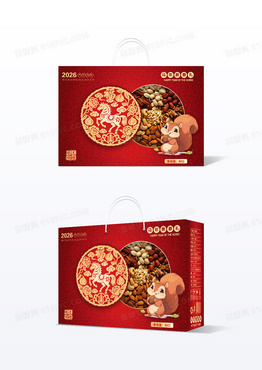 红色大气2026简约国风底纹新年坚果礼盒