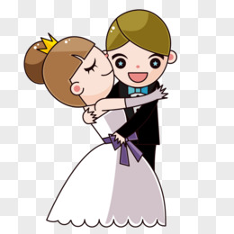 插画风结婚新郎新娘甜蜜亲吻照免抠元素