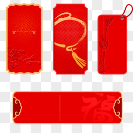一组红色中国风剪纸2024年龙年底纹元素合集