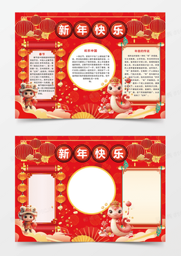 红色喜庆新年快乐蛇年手抄报2025年蛇年IP卡通新年手抄报