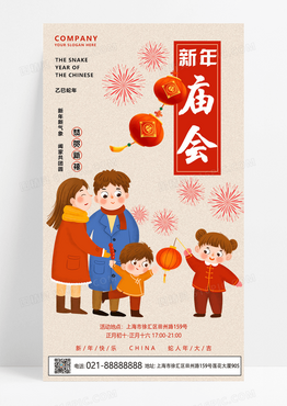 淡黄色插画风新年集市庙会活动海报海报模版