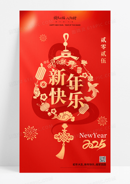 红色喜庆2025新年快乐春节新年蛇年海报中国风国风新春