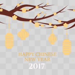 卡通手绘免抠新年快乐树枝灯笼素材