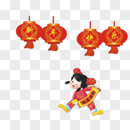 新年快乐灯笼和娃娃