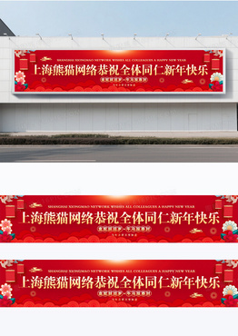 卡通手绘兔年兔子手拿新年快乐横幅免抠元素