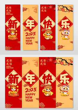 红色大气2025新年快乐蛇年挂画设计2025新年蛇年挂画