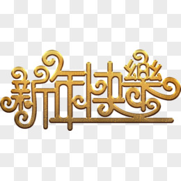 新年快乐金色艺术字高清免抠素材