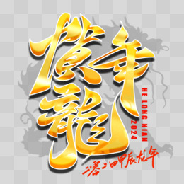贺龙年2024金色手写艺术字