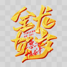 金龙贺岁甲辰龙年金色手写艺术字