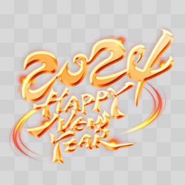 2024happynewyear金色手写艺术字