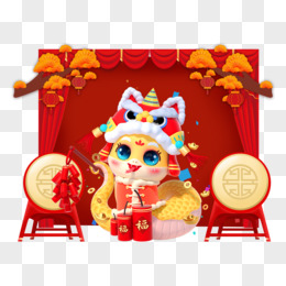 蛇年新年2025年卡通小蛇放鞭炮合成元素