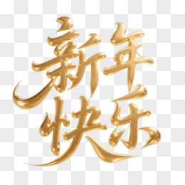 金色立体新年快乐艺术字