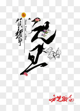 毛笔风蛇年字体设计蛇年贺新春金字红色描边