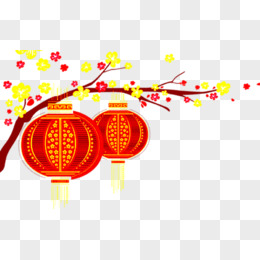 红灯笼带梅花树枝