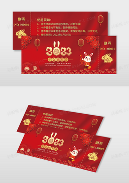 红色新年创意梅花灯笼背景2023兔年抽奖券