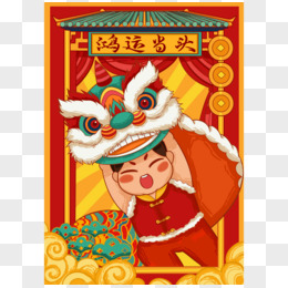 国潮风新年舞狮子场景元素