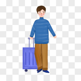 手绘插画风拉行李箱的男孩场景元素