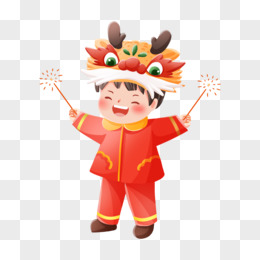 手绘卡通男孩舞龙免抠元素