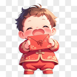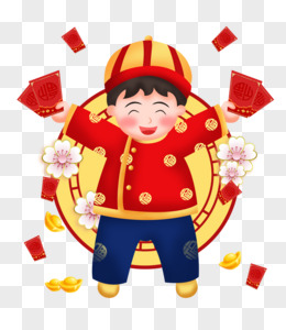 卡通新年装饰通用素材小男孩手拿红包免抠元素