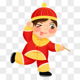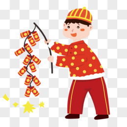 手绘卡通戴虎头帽放烟花的小男孩免抠元素