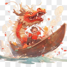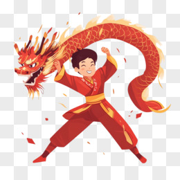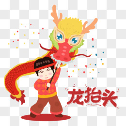 卡通手绘手绘龙抬头耍龙的小孩免抠元素