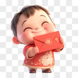 3D卡通新年装饰元素拿红包的小男孩免抠元素