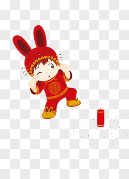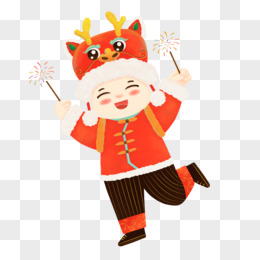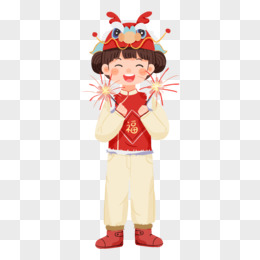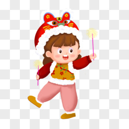 卡通手绘女孩戴虎头帽玩烟花棒元素