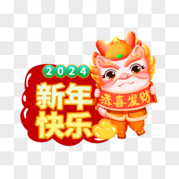 一组新春龙年新年手举牌合集元素六