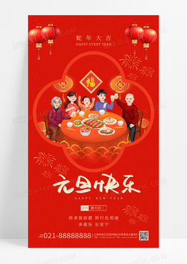 红色2025新年年夜饭团圆饭元旦快乐手机海报
