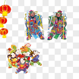 卡通手绘喜庆小牛贴春联挂灯笼场景素材