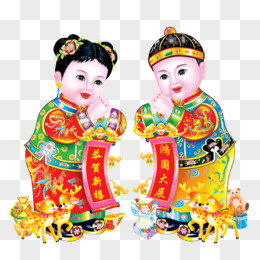 卡通矢量一对兔年戴兔头帽的福娃素材