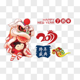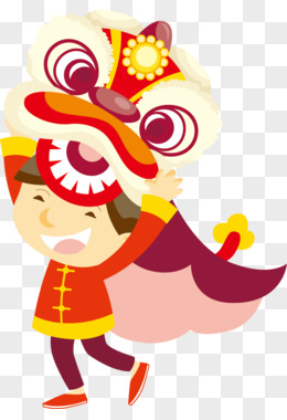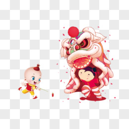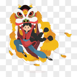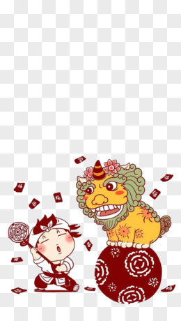 卡通手绘新年牛牛舞狮玩耍免抠元素