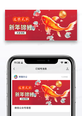 红色喜庆新年锦鲤公众号封面配图图片