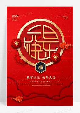 红色大气2023兔年元旦快乐宣传海报设计2023元旦新年元2023元旦新年元旦节