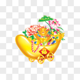 3D卡通新年装饰元素红包和金元宝免抠元素