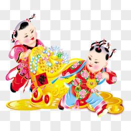 手绘剪纸锦鲤元宝荷花装饰免抠元素