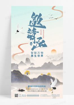 水墨彩韵科技邀请函宣传新品发布手机宣传海报